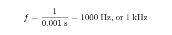 This formula is the key to measuring frequency manually on an oscilloscope. You don’t measure the frequency directly; instead, you measure the period of the waveform and then calculate the frequency from that measurement. For example, if you measure a period of 1 millisecond (0.001 seconds), the frequency is:
